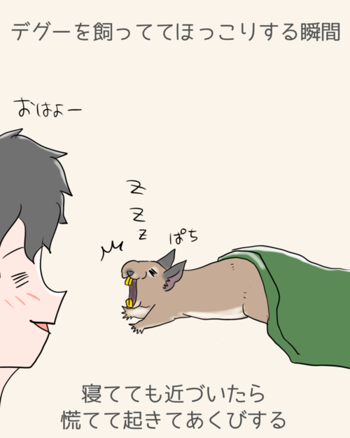 くっつくの大好きデグーは飼い主の体にくっついて寝ることがあります